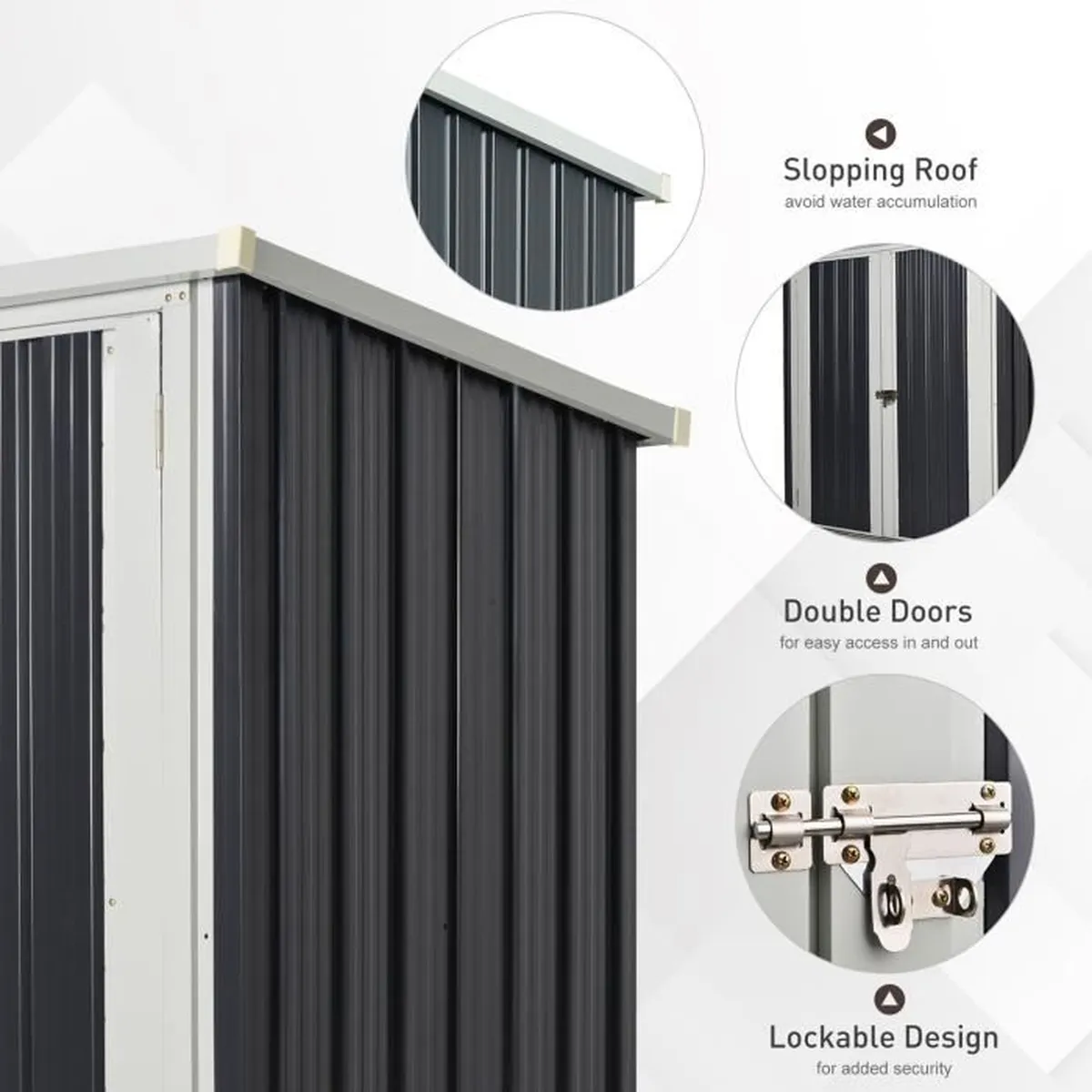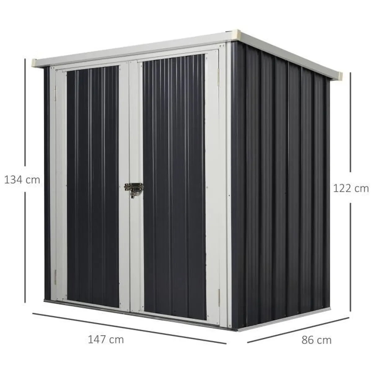 – Double porte avec loquet pour un accès facile et un rangement sûr (possibilité de poser un cadenas)
