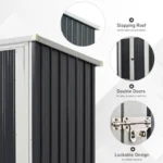 Ce rangement de jardin 2 portes en tôle d’acier vous sera d’une grande utilité. Vous pourrez l’utiliser en tant que petit abri de jardin, remise pour outils, abri de vélo, abri poubelle ou autre.