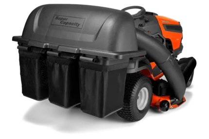 Bac de ramassage 210 litres avec sacs de collecte en polyester durable. Peut être utilisé avec ou sans sacs de pelouse. Indicateur